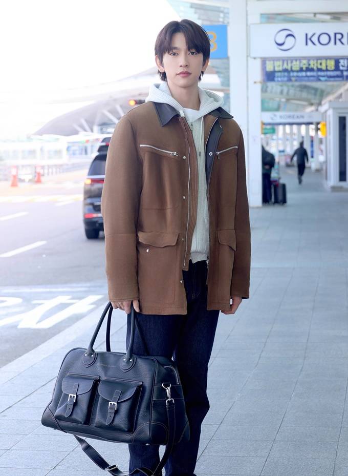 '갓세븐' 박진영, 스웨이드 재킷과 후드 니트 집업...품격있는 유러피안 댄디룩 로마 출국