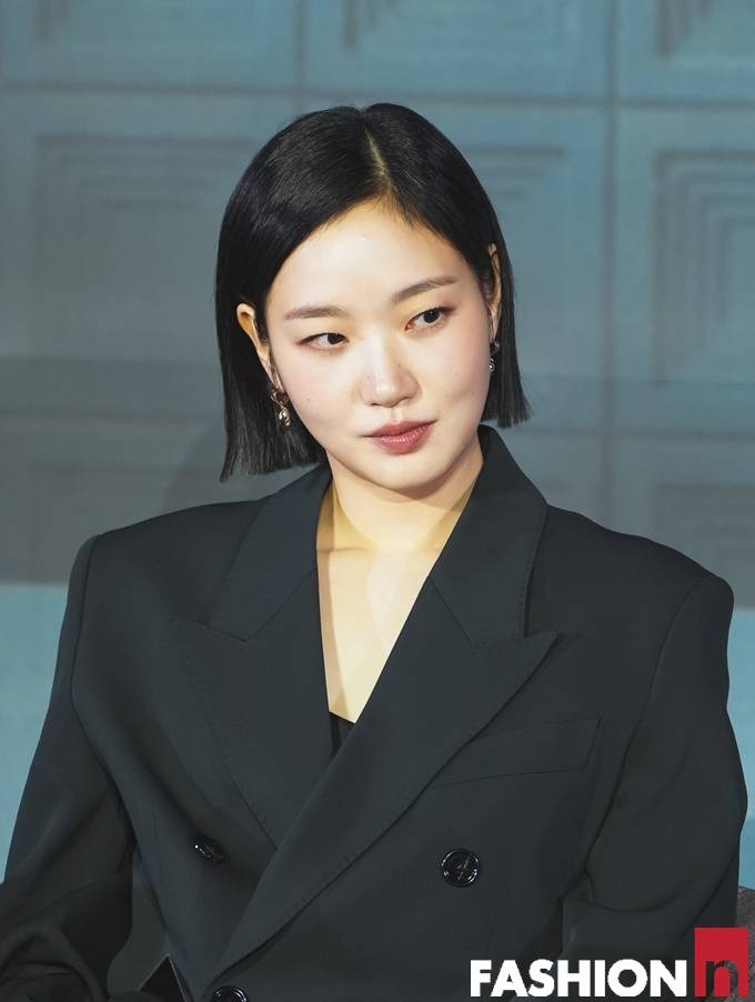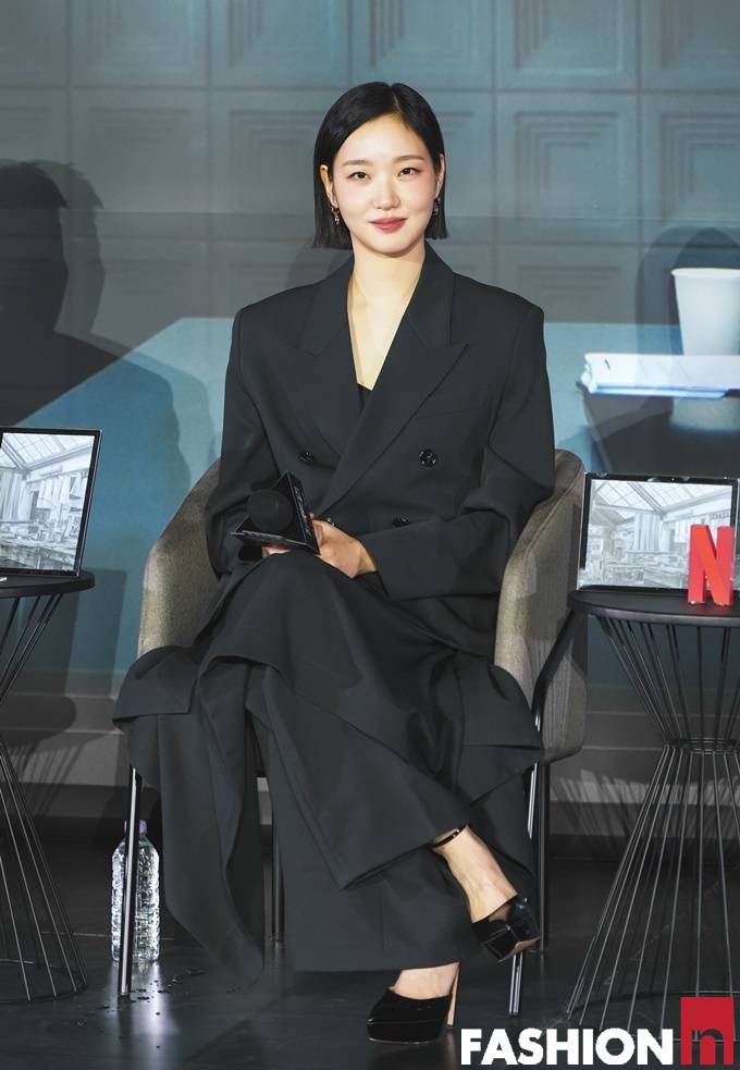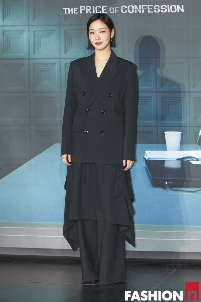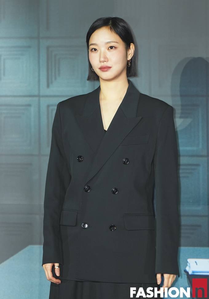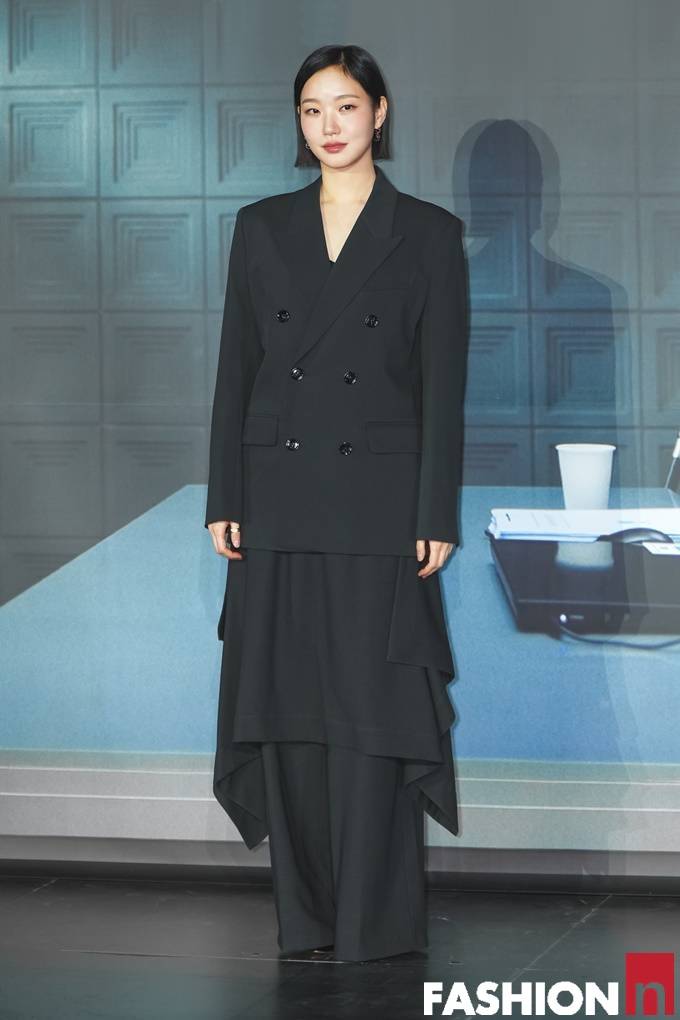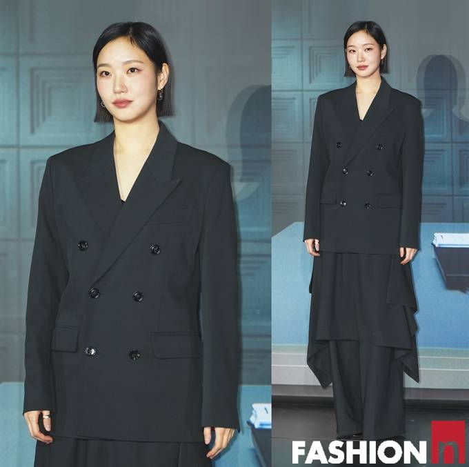 배우 김고은이 바지위에 스커트를 매치한 오버 더 팬츠 수트룩으로 시크한 패션감각을 뽐냈다.