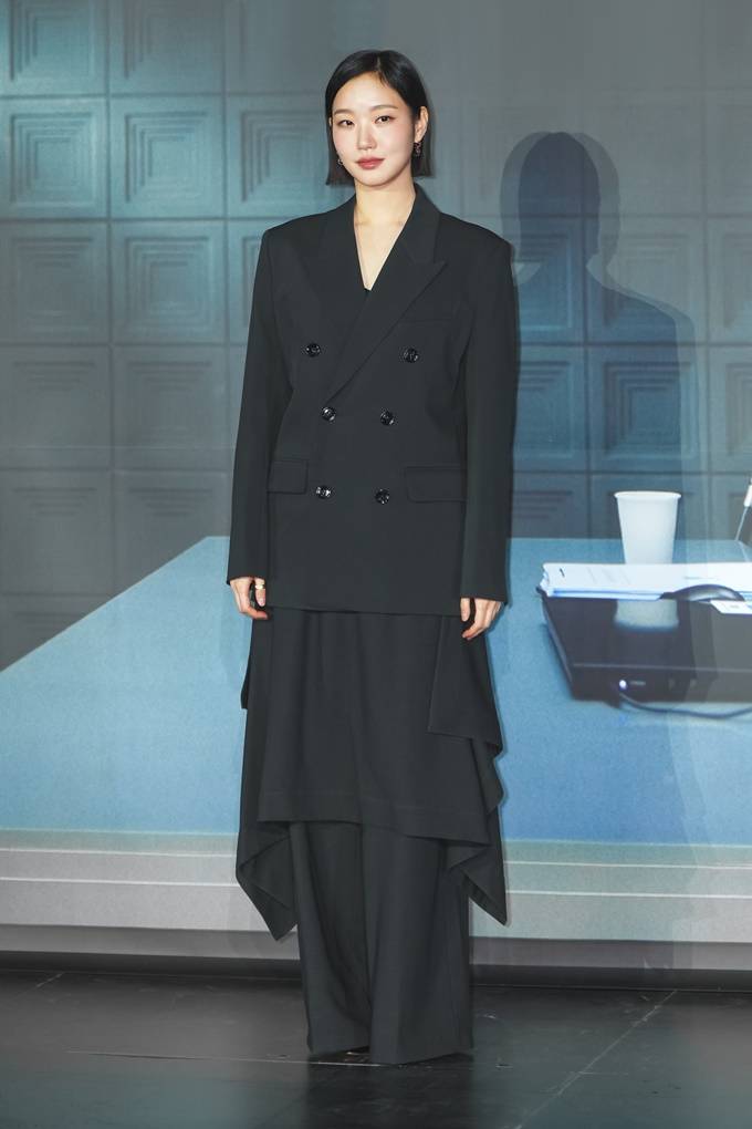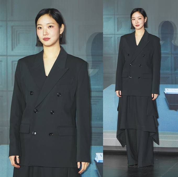 배우 김고은이 바지위에 스커트를 매치한 오버 더 팬츠 수트룩으로 시크한 패션감각을 뽐냈다.
