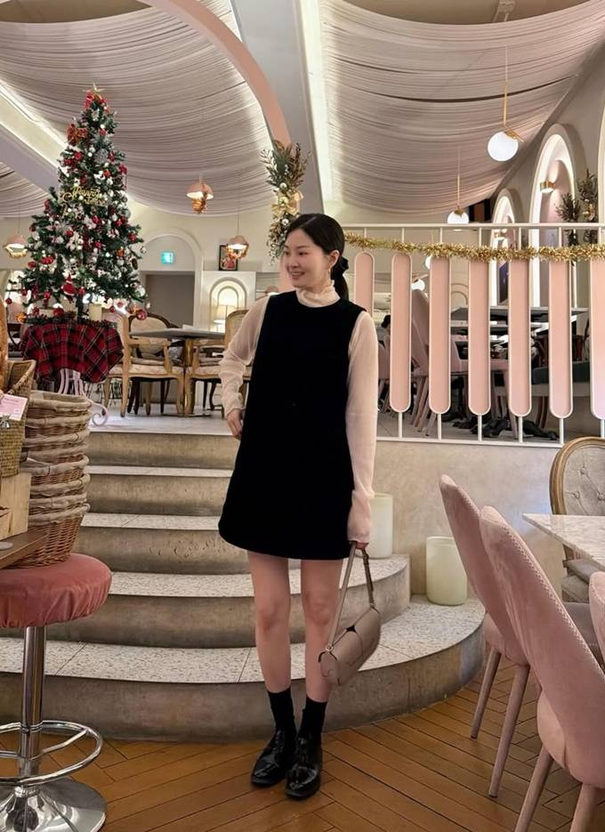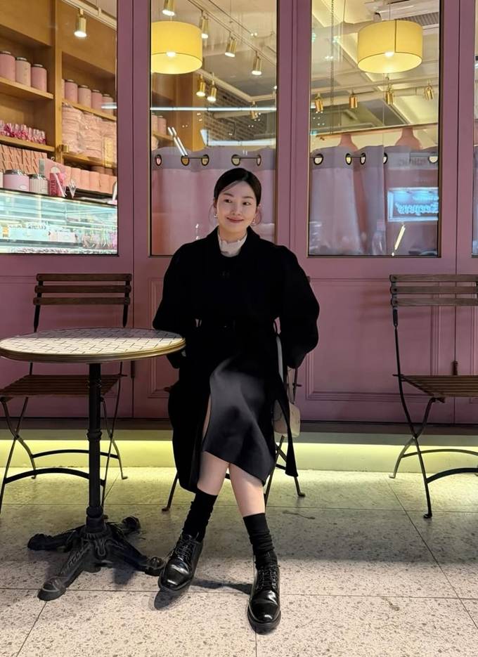 공개한 사진에서 류이서는 하이넥 화이트 블라우스에 블랙 뷔스티에 미니 원피스를 입고 블랙 벨티드 코트를 매치한 얼죽코 스타일로 시크하면서도 품위있는 겨울 하객룩을 연출했다.