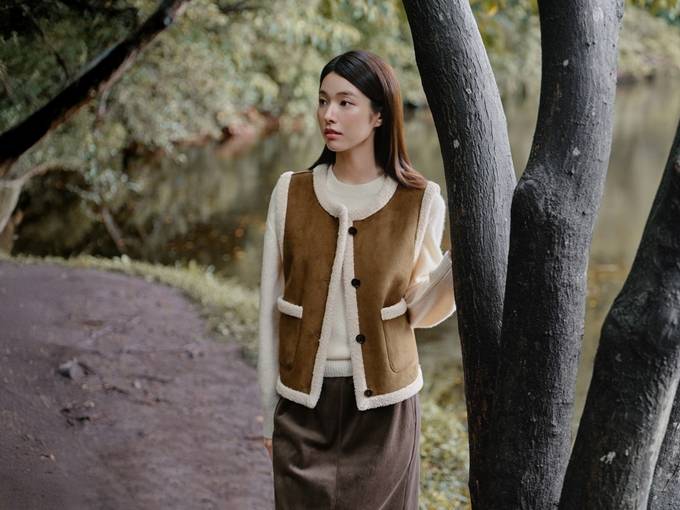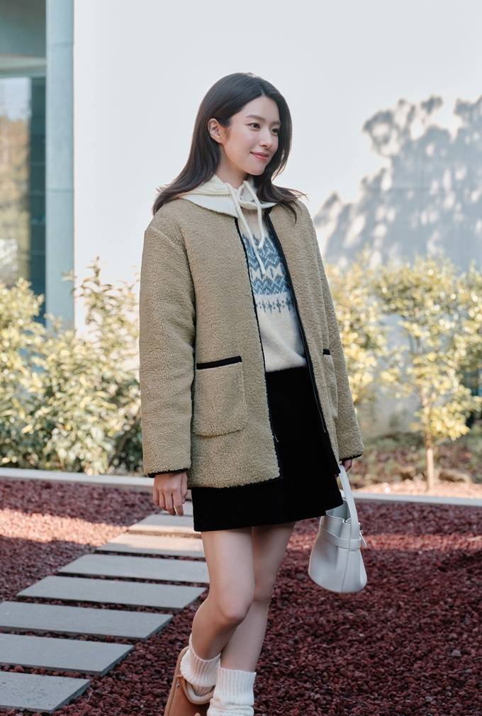 자연을 배경으로는 은은한 아이보리•카키 톤 패딩과 스웨터의 조합으로 겨울의 정취를 담아냈고, 도시적 분위기의 컷에서는 차분한 브라운 톤의 리버서블 점퍼와 무스탕 베스트를 톤온톤으로 스타일링해 세련된 겨울 룩을 완성했다.