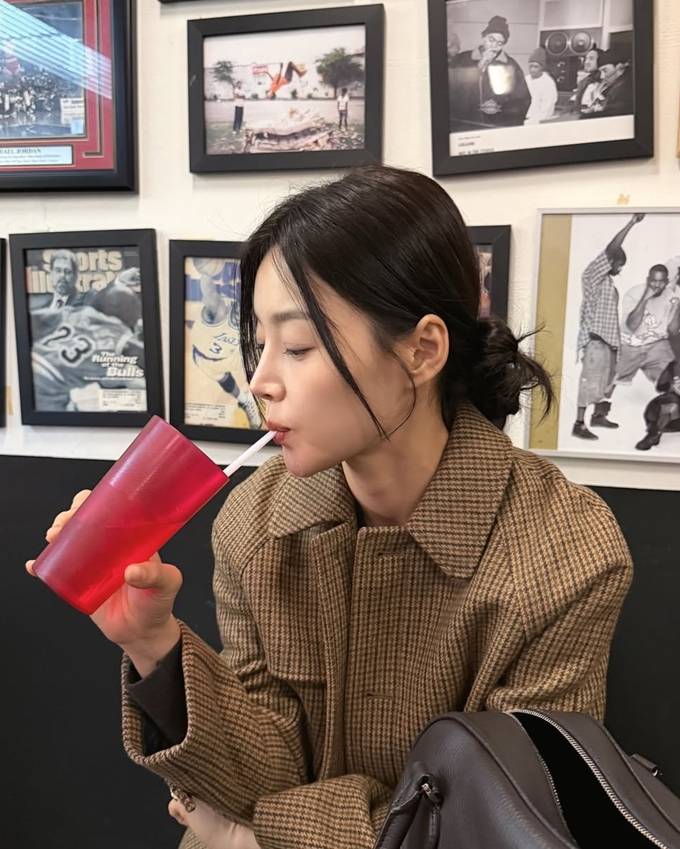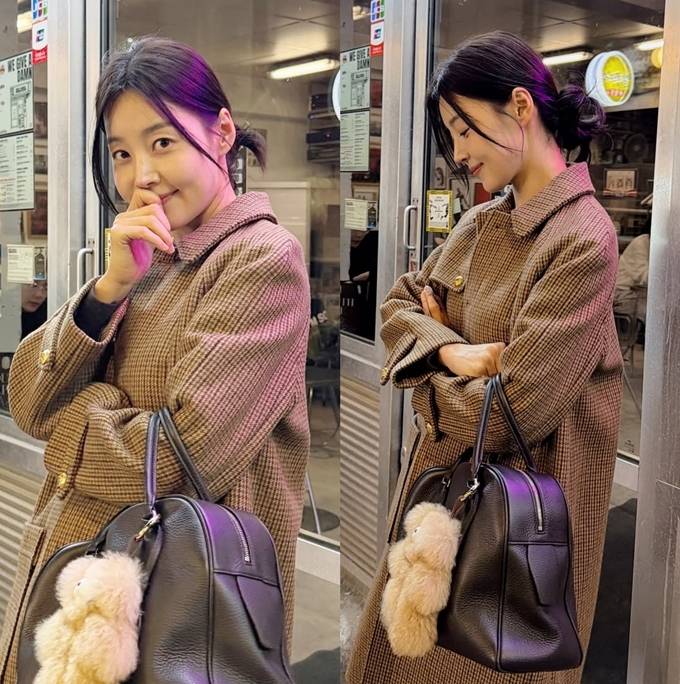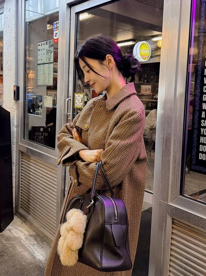배우 한지혜가 키링백에 헤링본 코트로 귀여운 얼죽코 품격을 드러냈다.