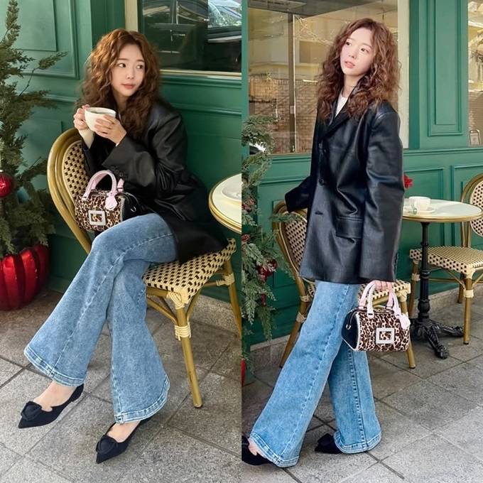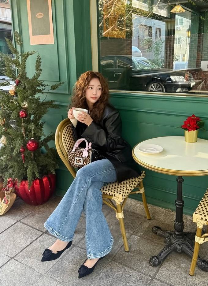 공개한 사진에서 채수빈은 은은한 컬 웨이브 헤어에 하이웨이스트 와이드 데님 팬츠를 입고 블랙 레더 재킷을 걸친 카페 외출 스타일로 시크하면서도 로맨틱한 프렌치룩을 선보였다.