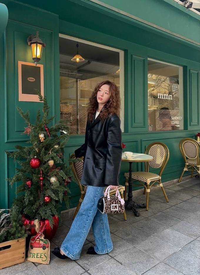 채수빈, 뽀글뽀글 파마 머리도 로맨틱! 오버핏 레더 재킷 찰떡 카페 프렌치룩