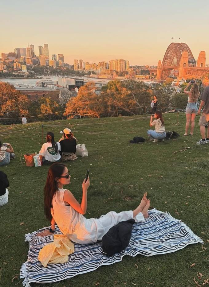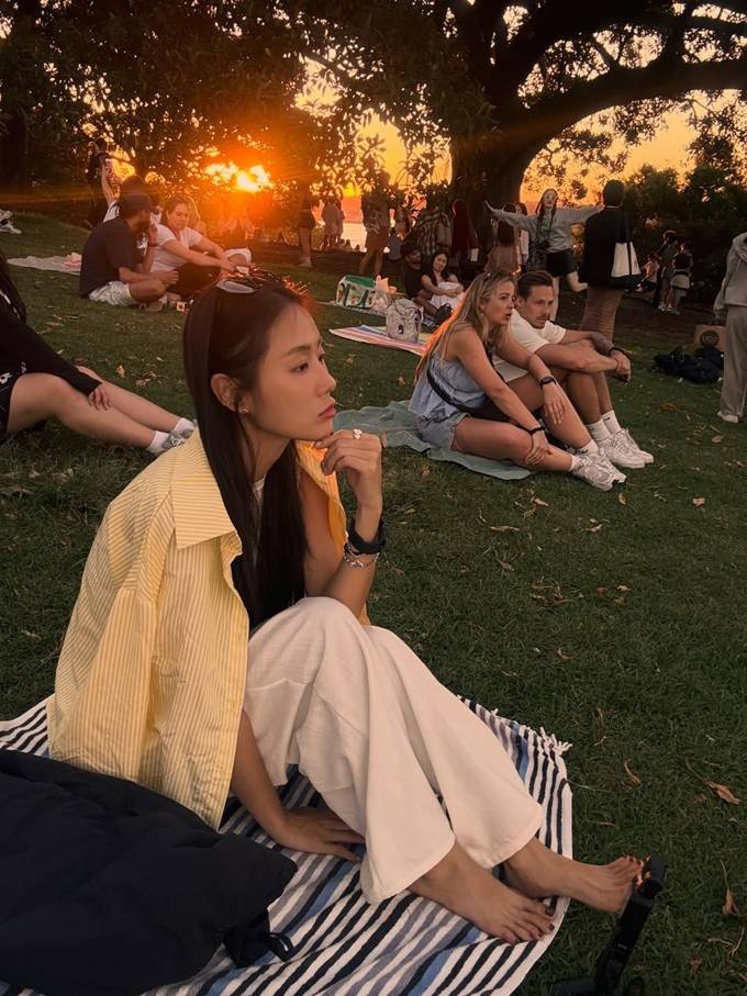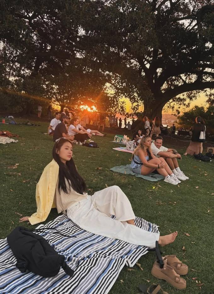 씨스타 출신 가수 소유가 호주에서 헐렁한 루즈 핏 피크닉룩으로 저녁 노을을 즐겼다.