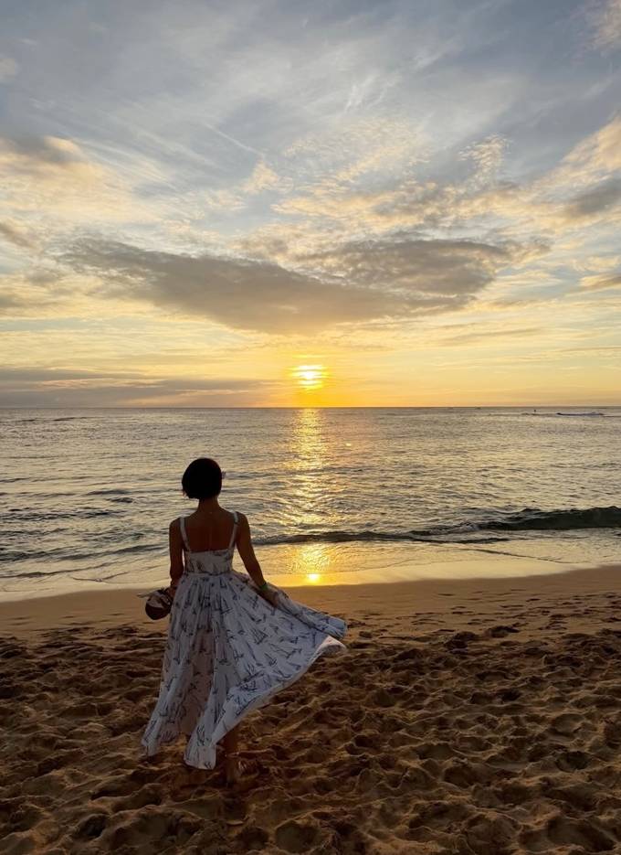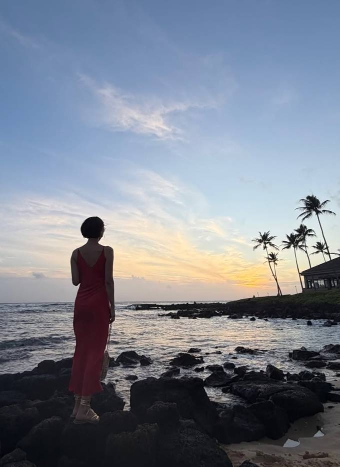 아나운서 최은경이 하와이에서 쇄골 라인을 드러낸 핫한 슬립 원피스 리조트룩으로 50대의 우아미를 발산했다.