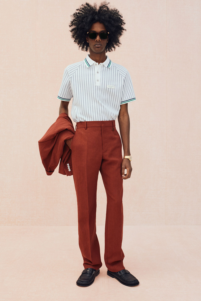 전통적인 테일러링 코드는 느슨한 실루엣, 가벼운 소재, 라운지웨어와의 예상치 못한 조합을 통해 여유롭고 우아한 남성 프레피룩으로 업데이트 되었다.