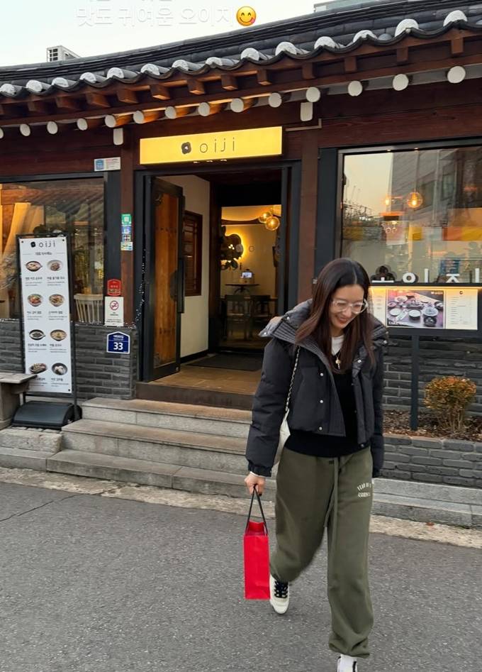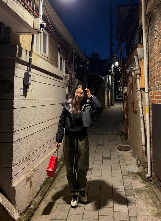 공개한 사진에서 왕빛나는 블랙 니트 카디건 위에 블랙 숏패딩을 입고 카키 컬러의 조거팬츠를 매치한 꾸안꾸 스타일로 포근하면서도 스타일리시한 나들이룩을 선보였다.