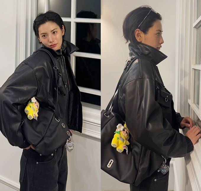 그룹 애프터스쿨의 출신의 배우 나나가 숏컷 헤어 스타일에 레더 재킷 데일리룩으로 더 힙해 보이는 카리스마를 발산했다.