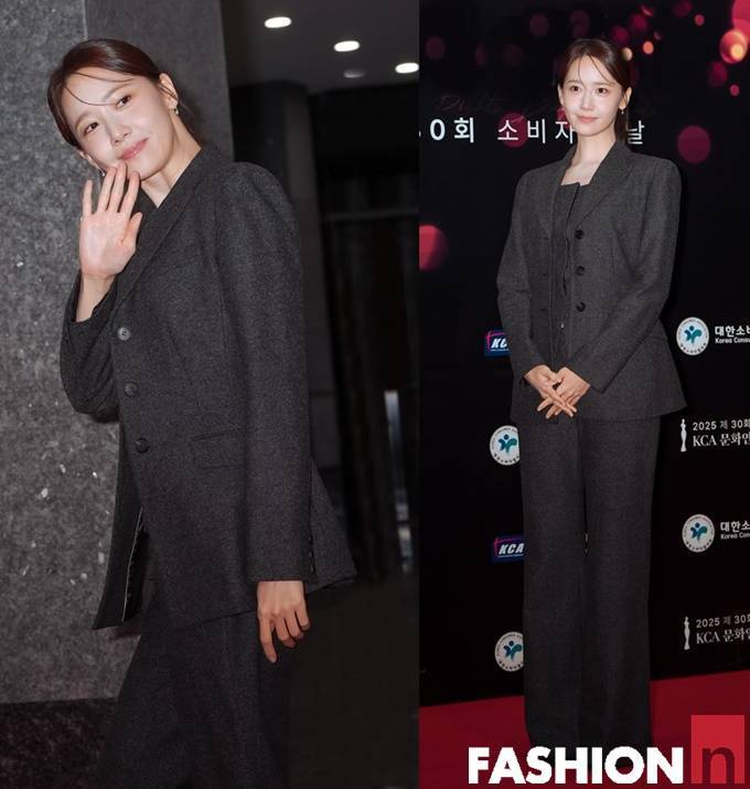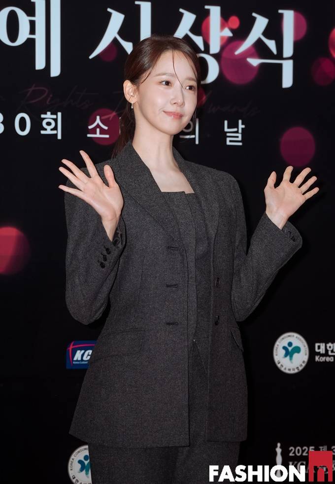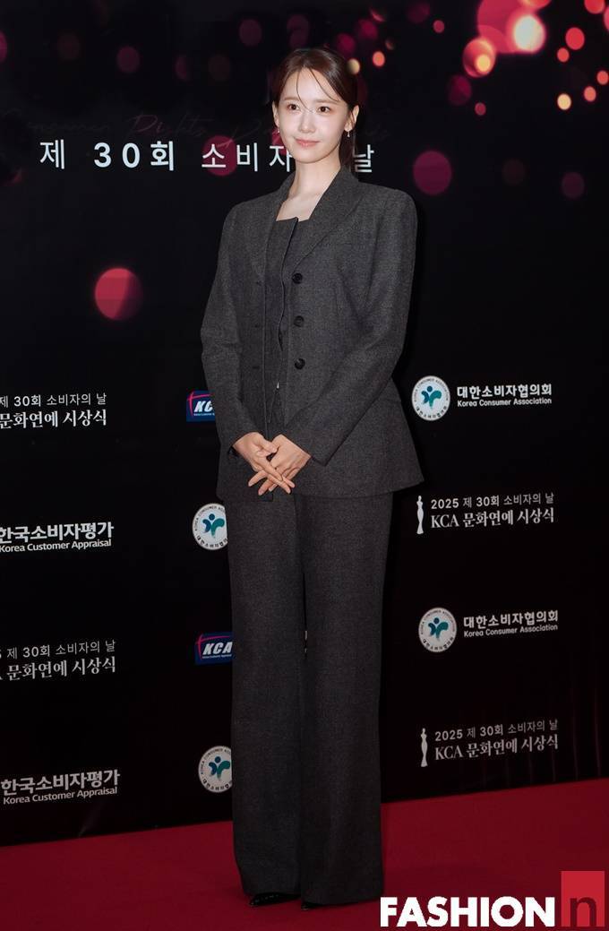 [패션엔 포토] 소녀시대 윤아, 변함없는 꽃사슴 미모...파워당당 클래식한 쓰리피스 슈트룩