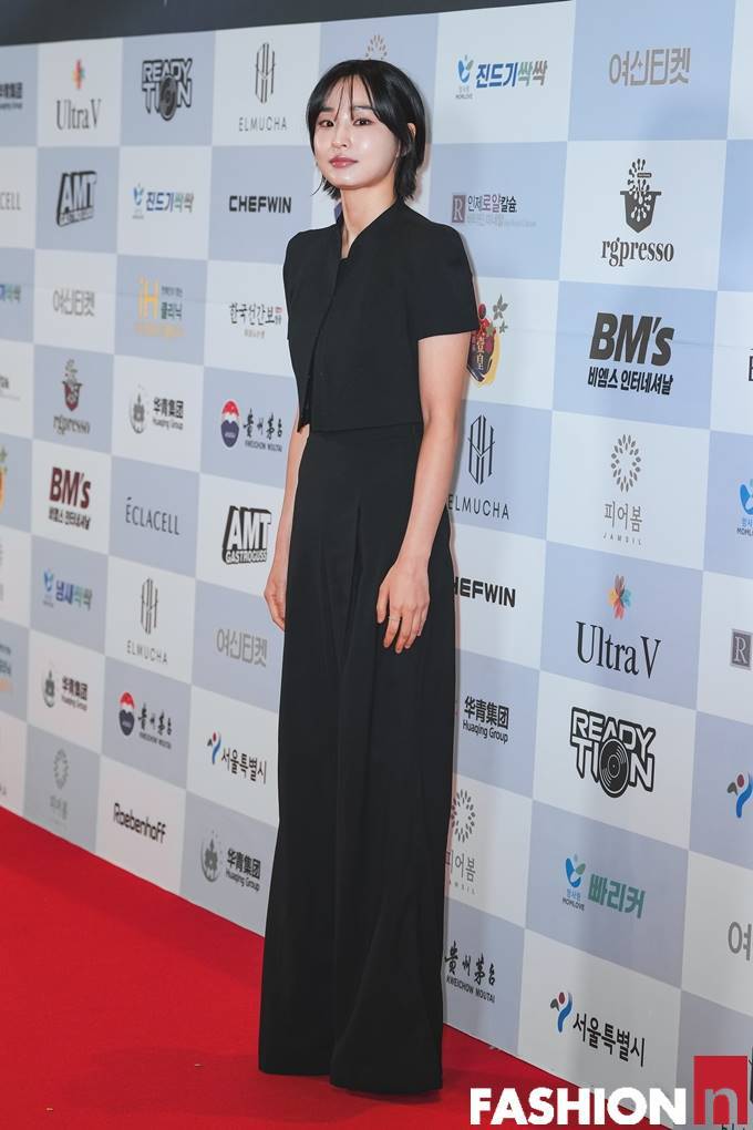 이날 방효린은 숏컷 헤어 스타일에 블랙 크롭 재킷과 블랙 팬츠의 올 블랙 슈트룩으로 청순하면서도 단단한 앳된 미모를 발산했다.