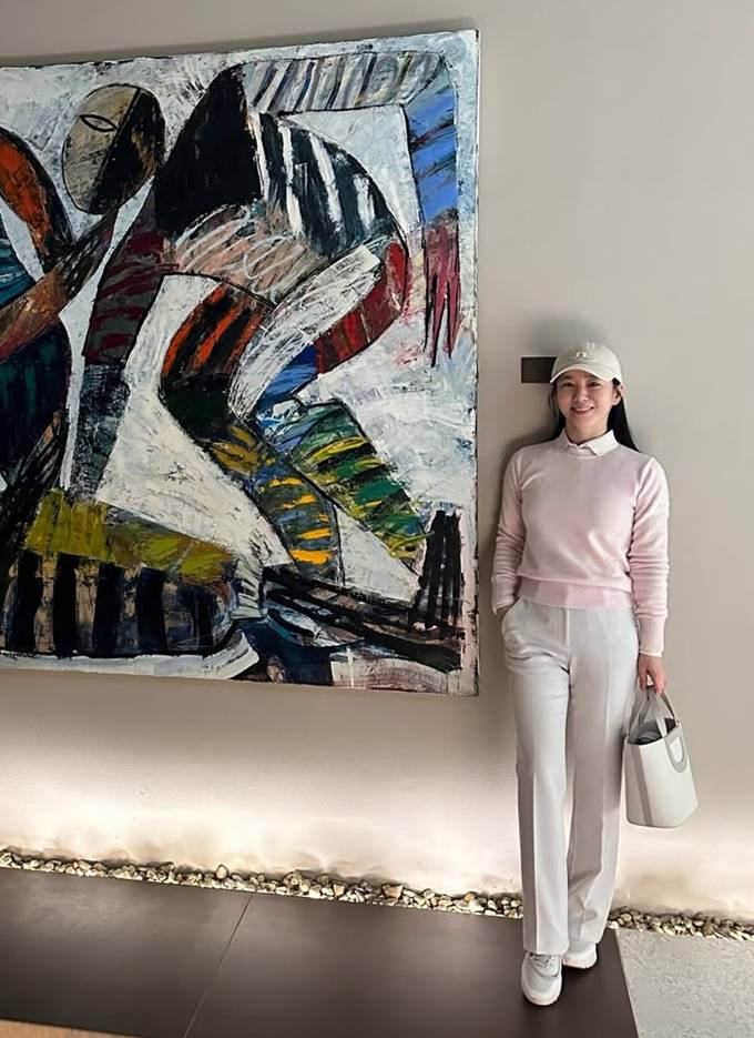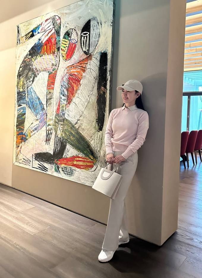 박주미, 골프장에서 '자비에 박스터' 전시에 흠뻑! 청담동 사모님의 단아한 골프룩