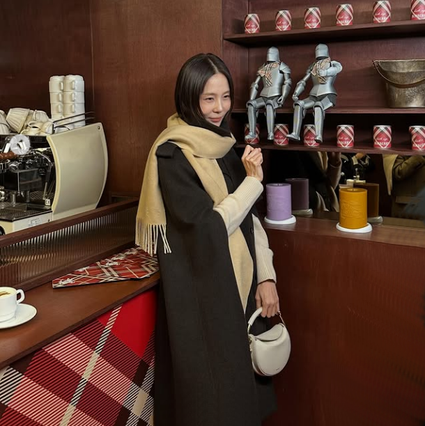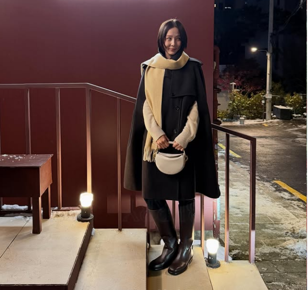 ▶ 방송인 김나영은 브라운 케이프 코트와 머플러를 매치한 우아한 홀리데이 케이프 코트룩으로 한층 달라진 비주얼을 뽐냈다.