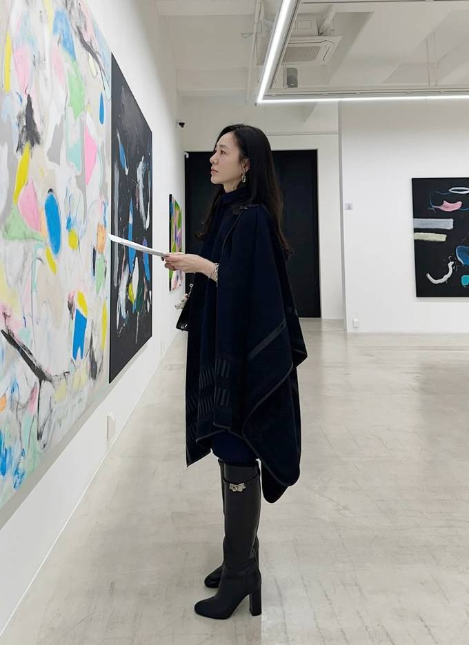 ▶ 배우 박주미는 지난 11월  미니멀한 실루엣이 매력적인 블랙 케이프 코트룩으로 우아한 전시회룩을 연출했다.