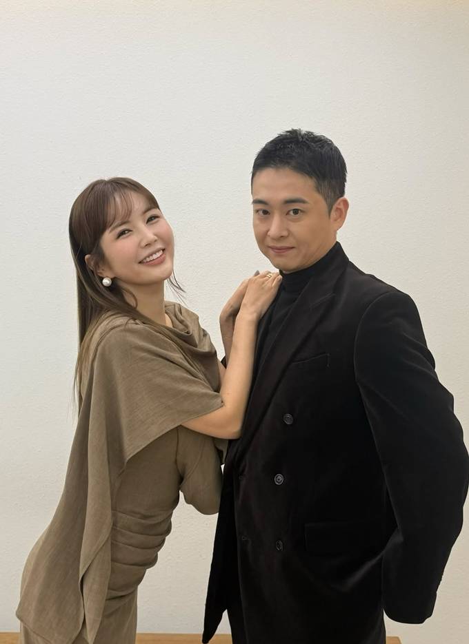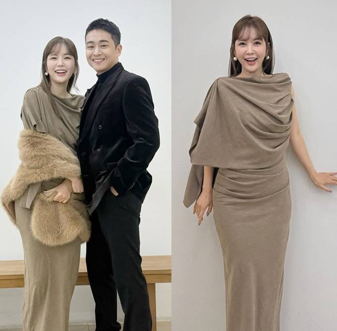 공개한 사진에서 장영란은 카멜 컬러의 롱 스커트와 케이프 톱의 셋업 드레스를, 남편 한창은 블랙 팬츠와 터틀넥에 블랙 더블 버튼 재킷의 캐주얼 슈트로 훈훈하면서도 다정한 MC룩을 선보였다.