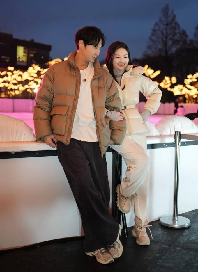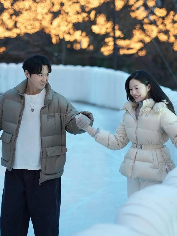 공개한 사진에서 류이서는 아이보리 벨티드 광택 숏패딩을 입었으며, 전진은 브라운 컬러의 숏패딩으로 다정한 숏패딩 커플룩을 선보였다.