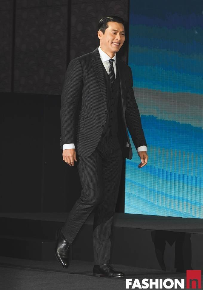 배우 현빈이 데뷔 22년만에 몸무게 14kg를 찌운 가운데 한층 푸근해진 비주얼의 쓰리피스 슈트핏으로 조각각같은 비주얼을 자랑했다.