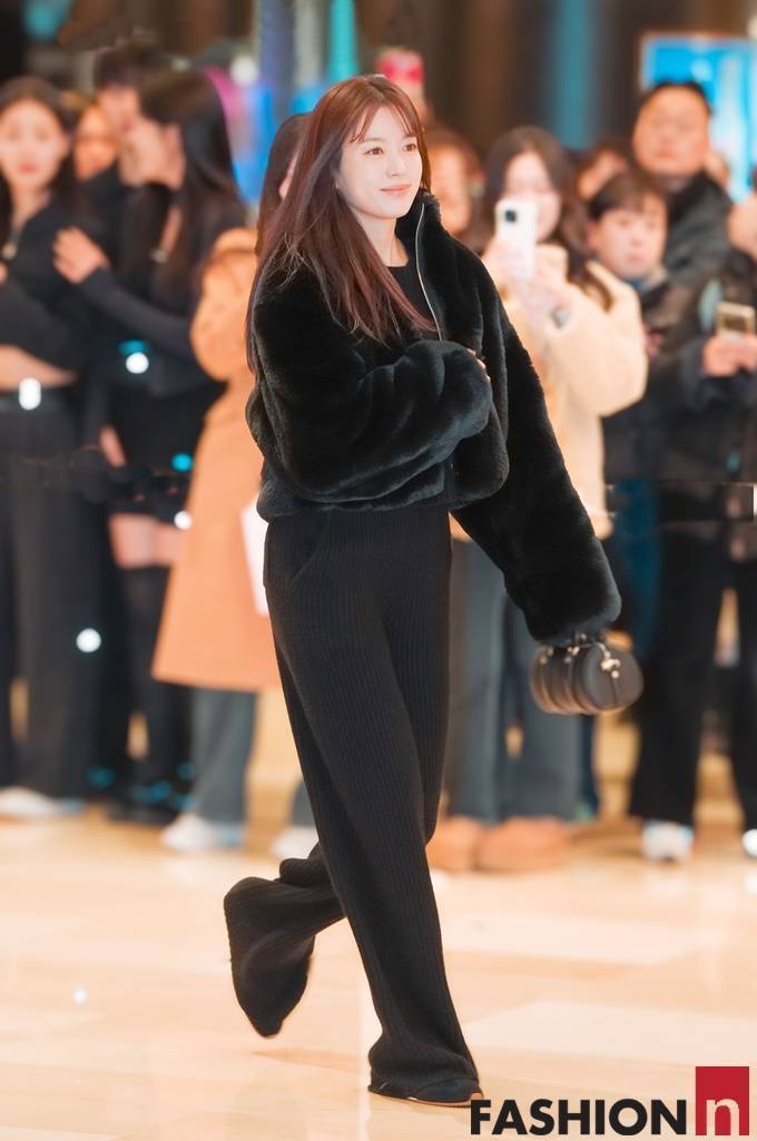 ▶ 배우 한소희는 12월 13일 복실복실 페이크 퍼 재킷과 미니 스커트를 매치한 윈터룩으로 공항을 단숨에 화보 현장으로 만들었다.