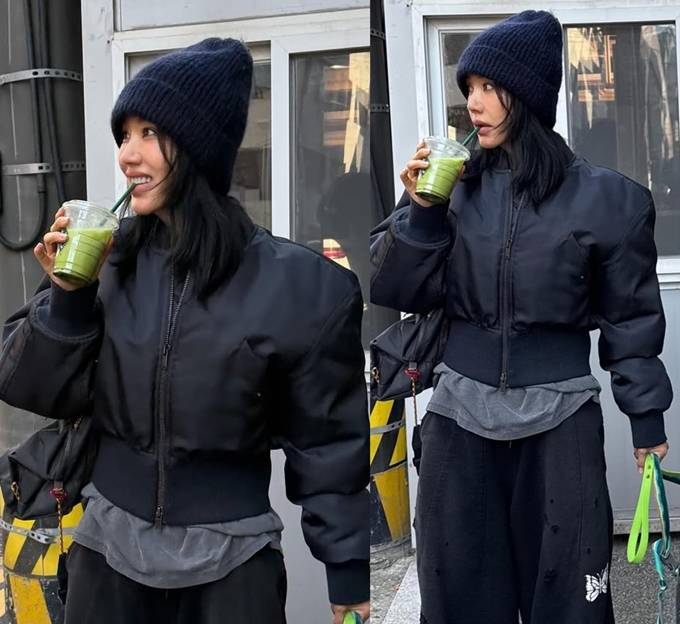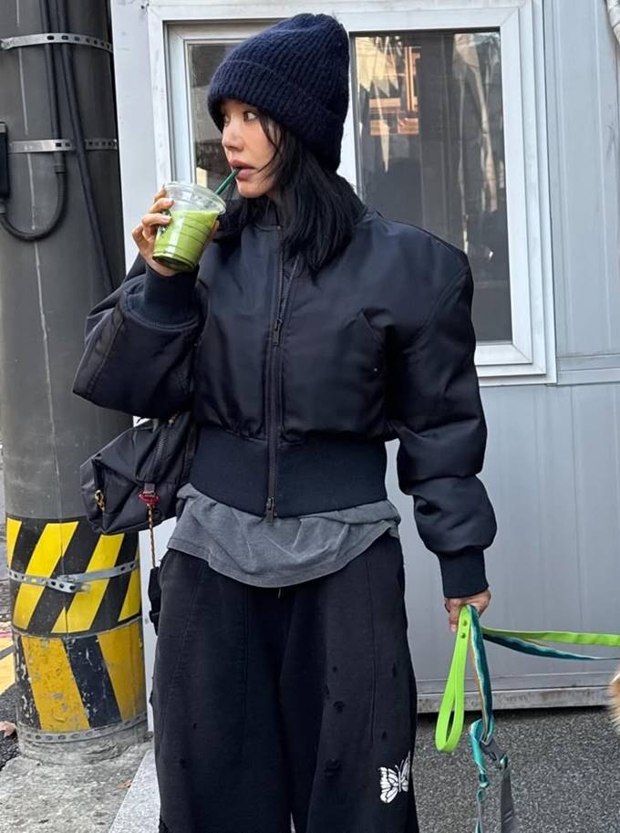 가수 겸 배우 엄정화가 패딩은 짧고 팬츠는 루즈하게 스타일링한 겨울 산책룩으로 힙하면서도 시크한 스타일을 연출했다.