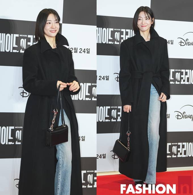 이날 박지현은 짧은 숏컷 헤어 스타일에 데님 팬츠를 입고 블랙 벨티드 롱 코트를 매치한 시사회룩으로 청순하면서도 싱그러운 미모를 발산했다.