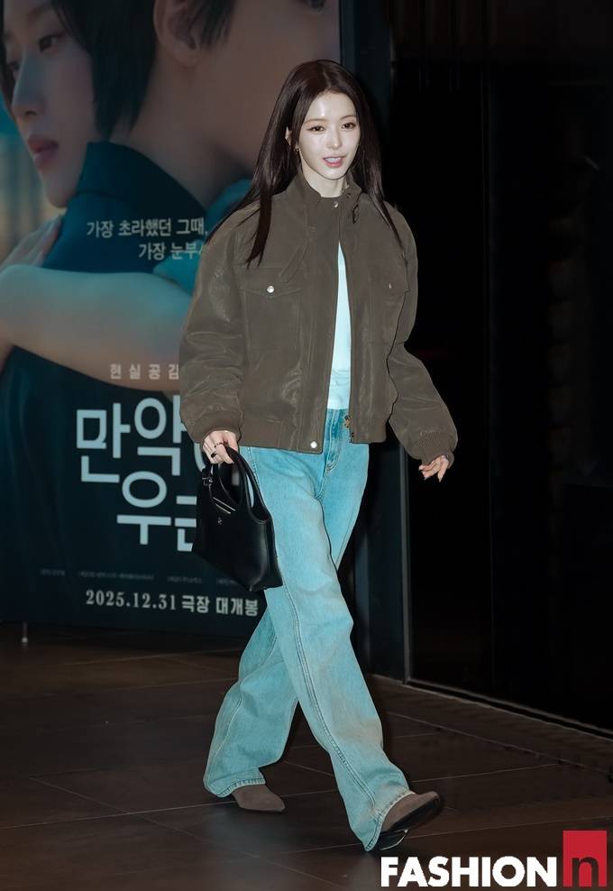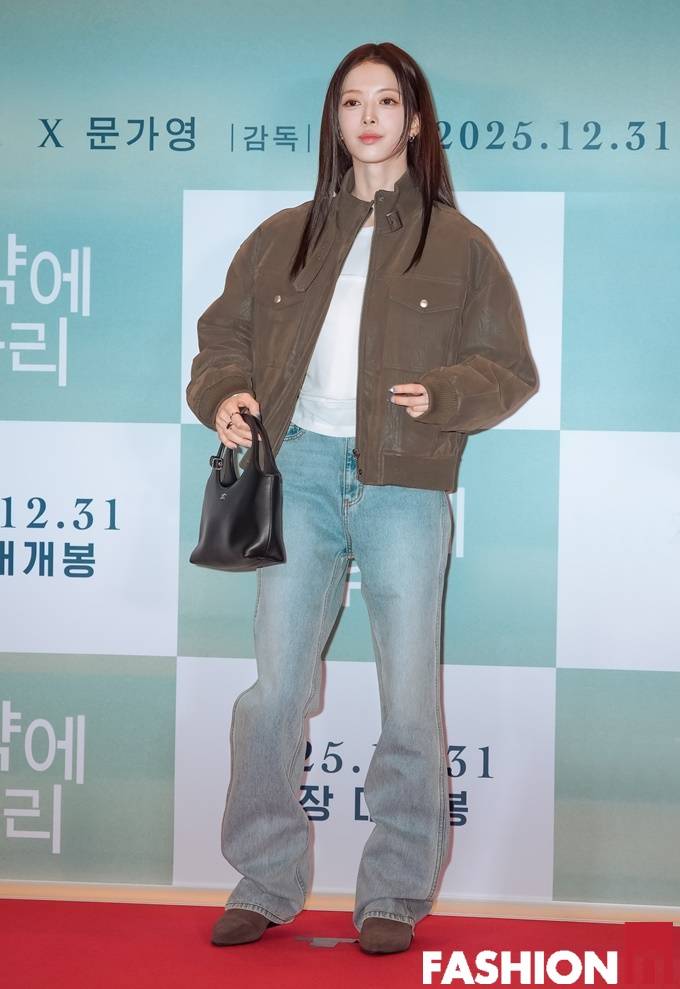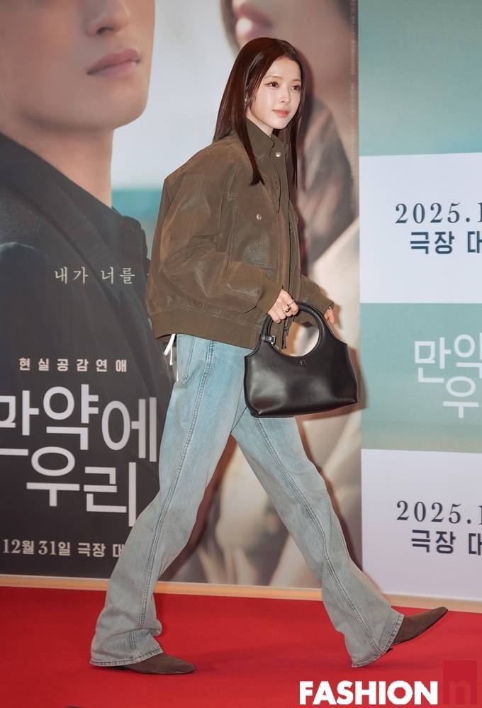 배우 노정의가 봄버 재킷과 청바지를 매치한 스타일리시한 시사회룩으로 눈부신 미모를 빛냈다.