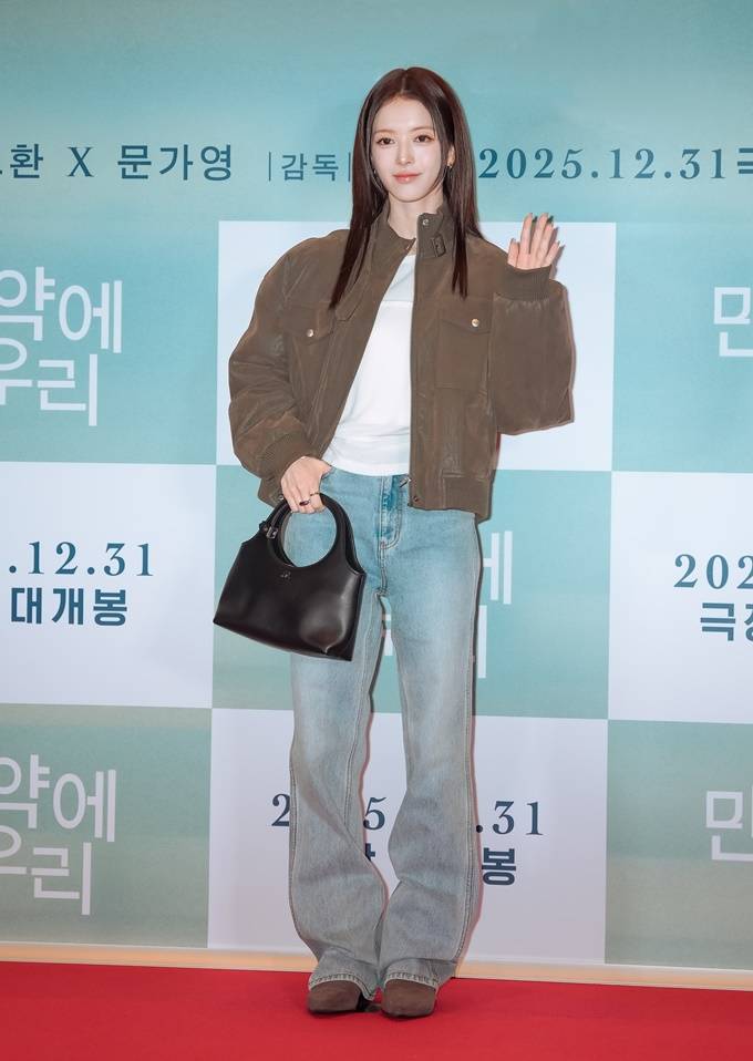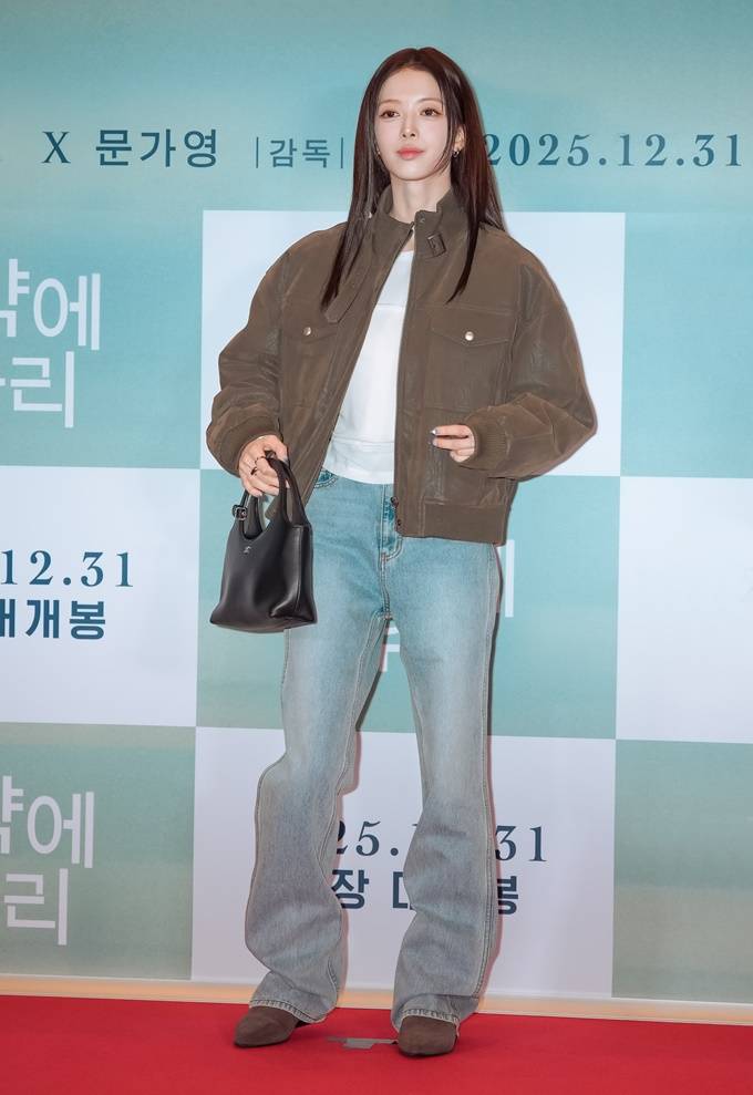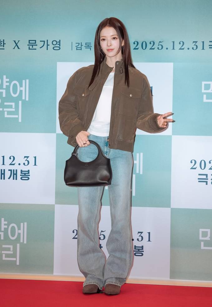 배우 노정의가 봄버 재킷과 청바지를 매치한 스타일리시한 시사회룩으로 눈부신 미모를 빛냈다.