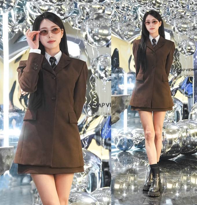 [패션엔 포토] 있지 유나, 성수동이 발칵! 브라운 스커트 슈트로 뽐낸 선글라스 여신