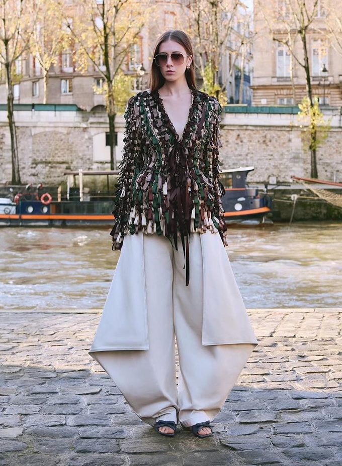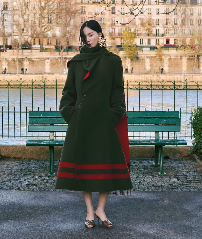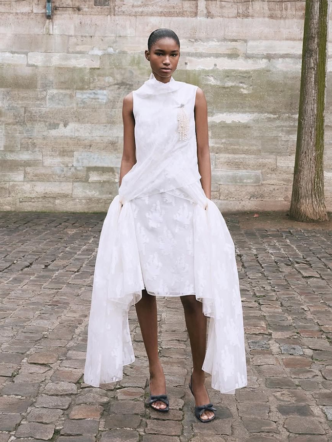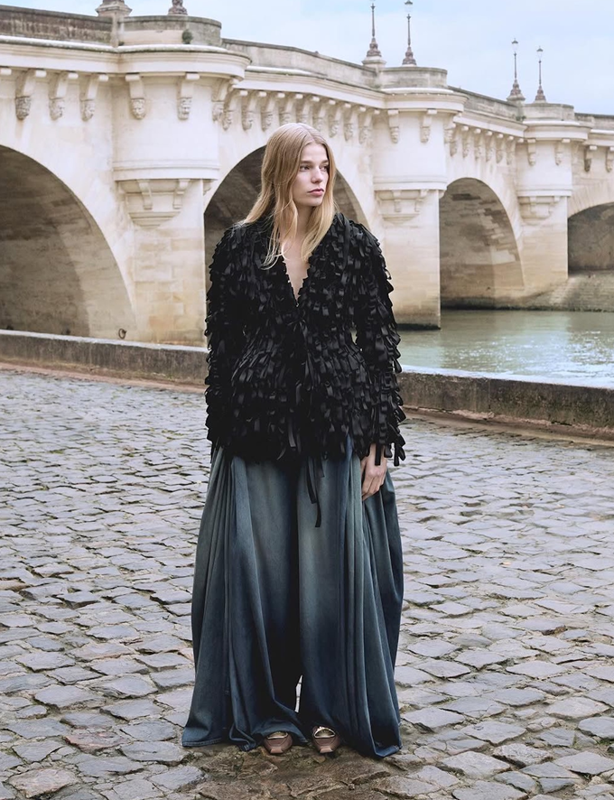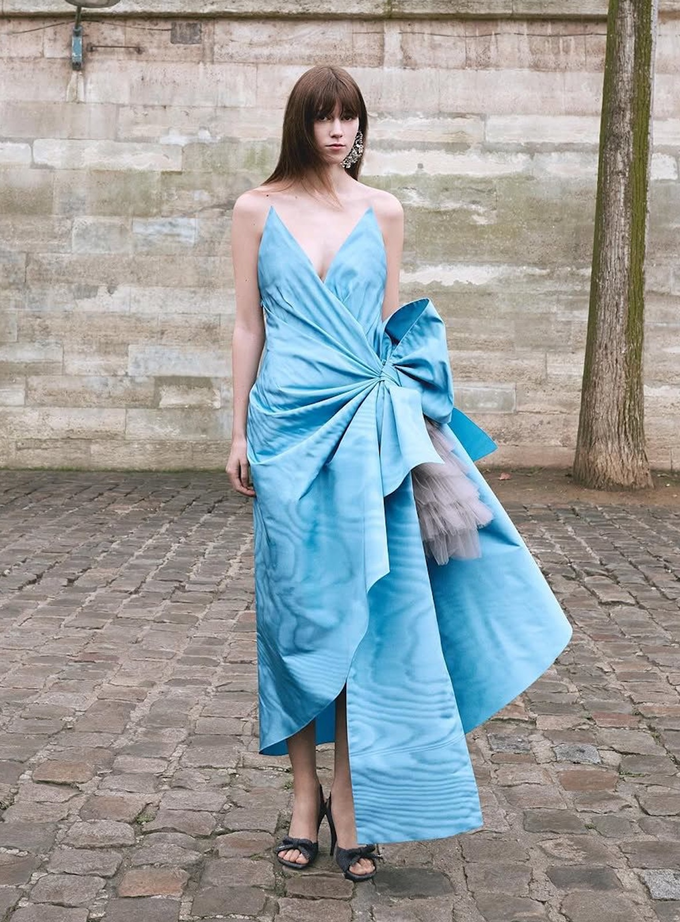 부드럽거나 크롭된 형태, 혹은 코트 크기로 확장된 바 재킷을 비롯해 몸을 감싸는 여유로운 코트, 니트 케이프, 드레이프 드레스, 와이드 실크 데님 팬츠, 측면의 극적인 볼륨이 돋보이는 조각적인 드레스가 컬렉션의 핵심을 이룬다.