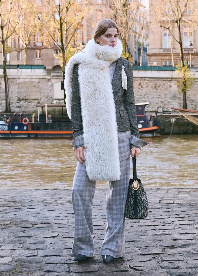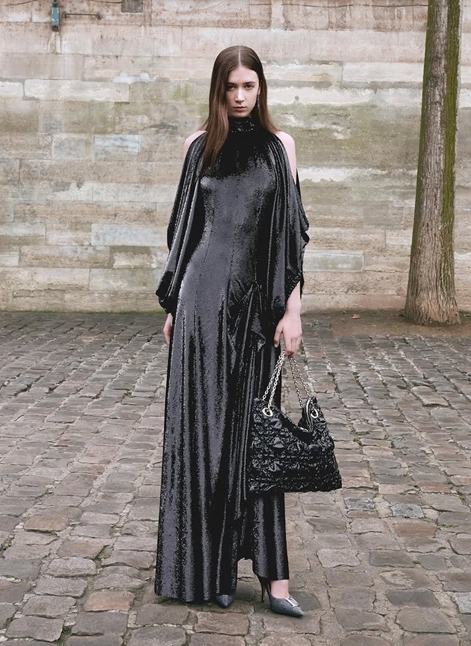 컬렉션 전반에는 디올의 상징적인 요소들이 자연스러운 일상의 감각과 결합된 과감한 실루엣으로 구현되고, 웅장함과 절제된 분위기가 균형을 이루며 컬렉션의 깊이를 더했다.
