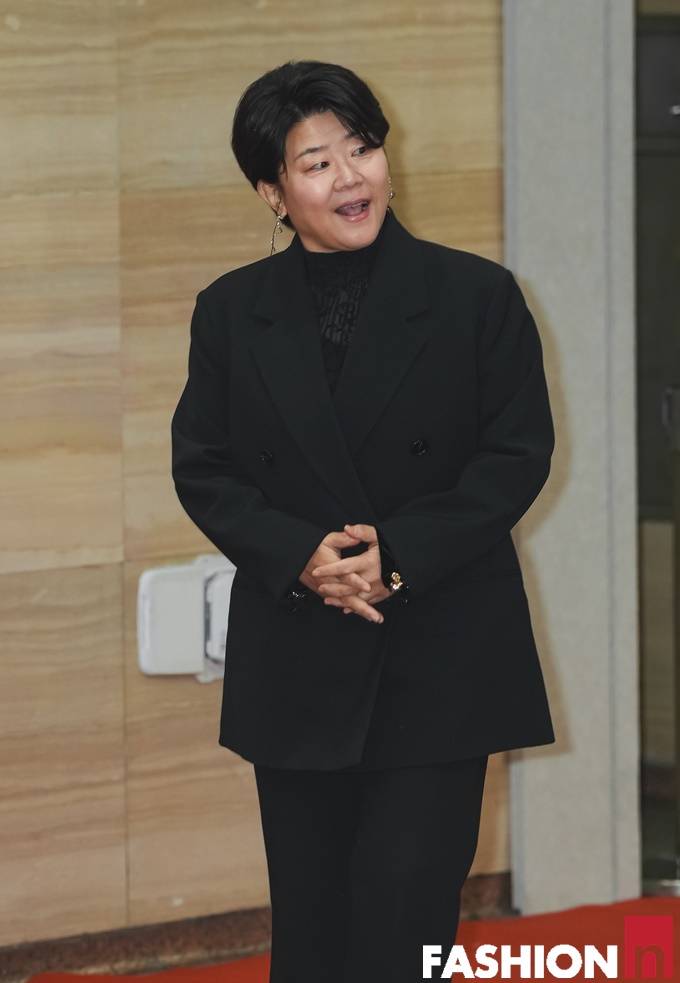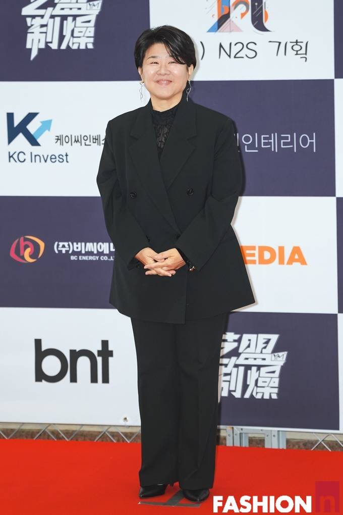 배우 이정은 블랙 슈트룩으로 춘사영화제 레드카펫을 밝혔다.