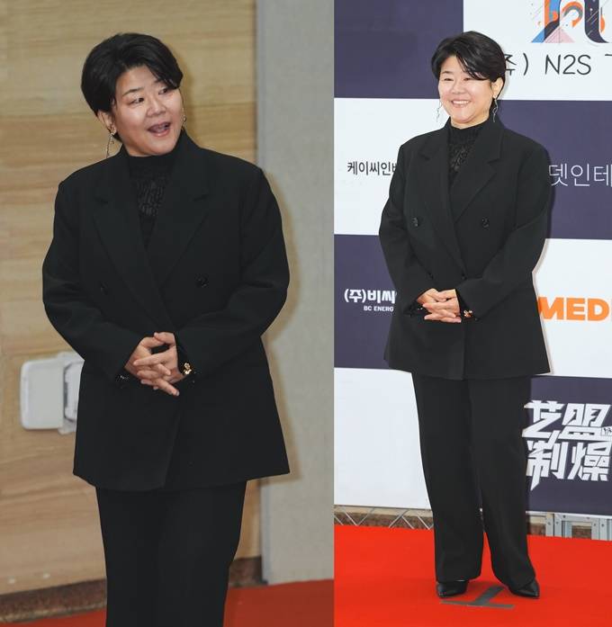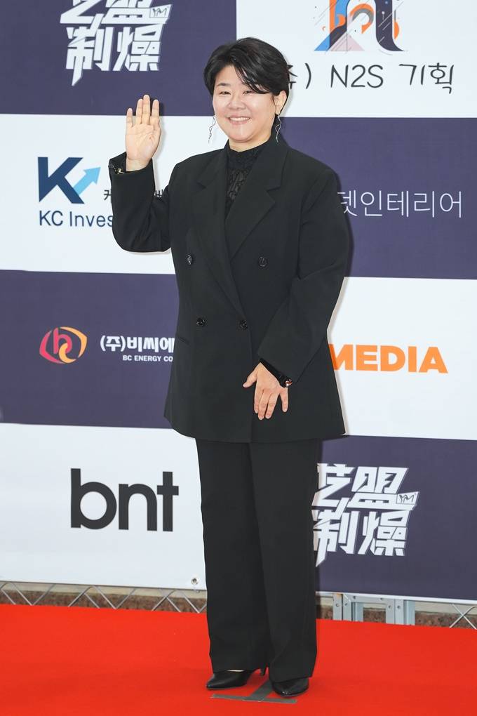 배우 이정은 블랙 슈트룩으로 춘사영화제 레드카펫을 밝혔다.