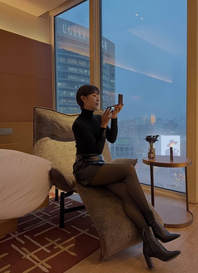 고원희, 미니멀 블랙룩의 진수! 숏컷과 찰떡 터틀넥과 레더 톤온톤 올 블랙룩