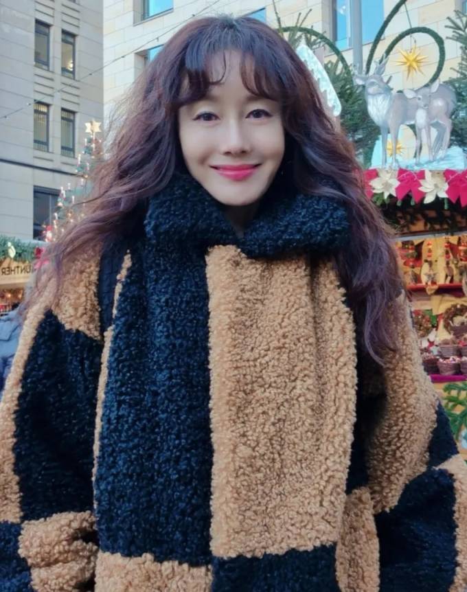 배우 김지수가 체코 프라하에서 큐디한 부클 테디베어 홀리데이룩으로 크리스마스 낭만을 즐겼다.