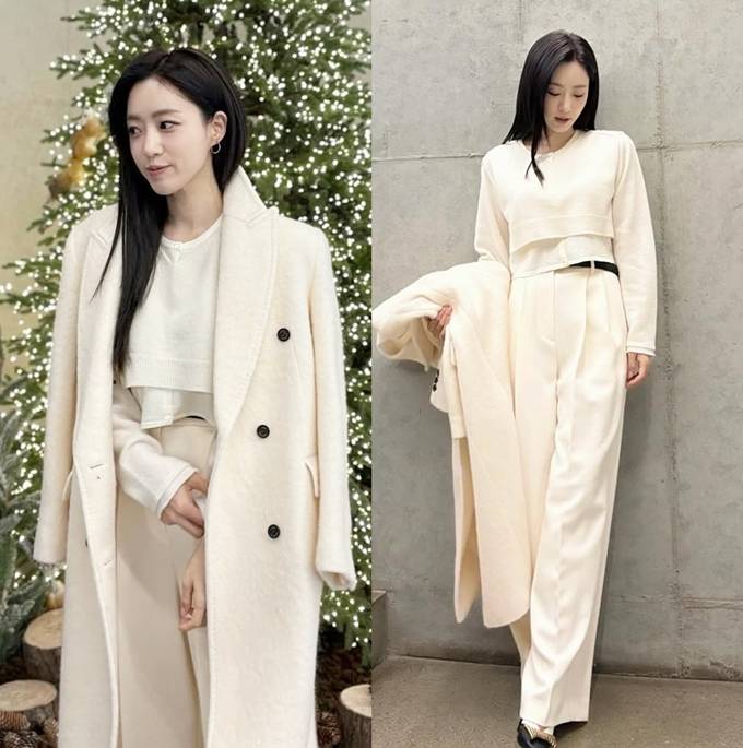 공개한 사진에서 함은정은 화이트 이너 위에 아이보리 컬러의 크롭 니트를 레이어드하고 하의로 아이보리 컬러의 투턱 팬츠를 입고 아이보리 코트를 걸친 얼죽코룩으로 단아하면서도 세련된 외출 스타일을 완성했다.