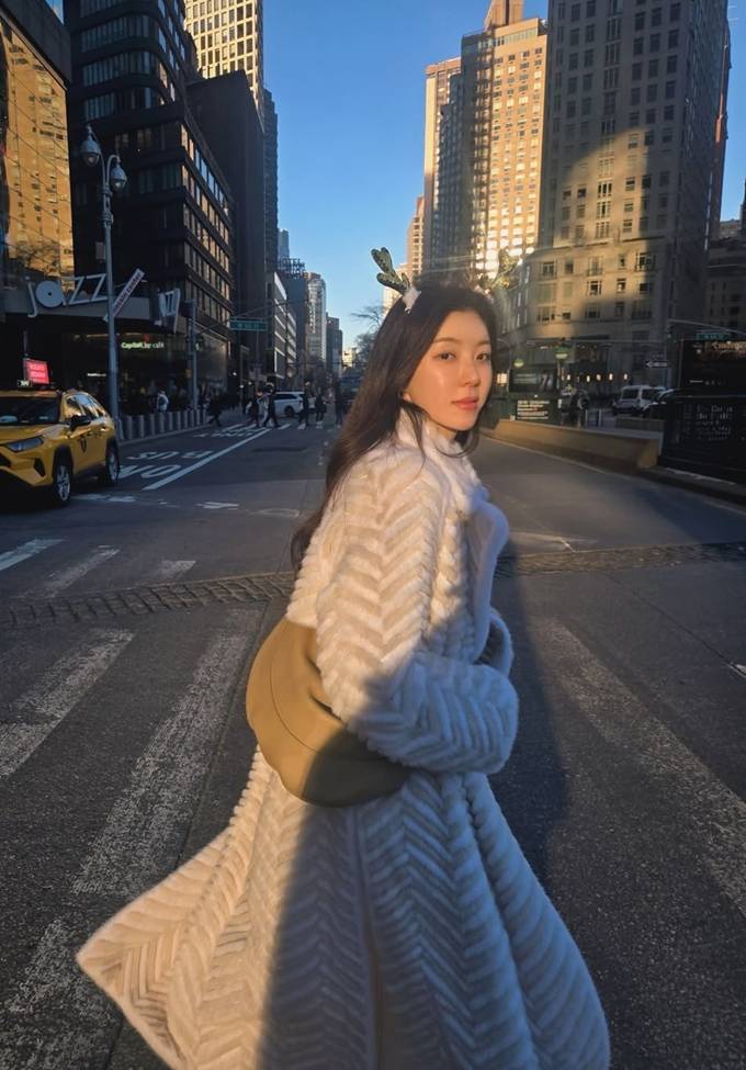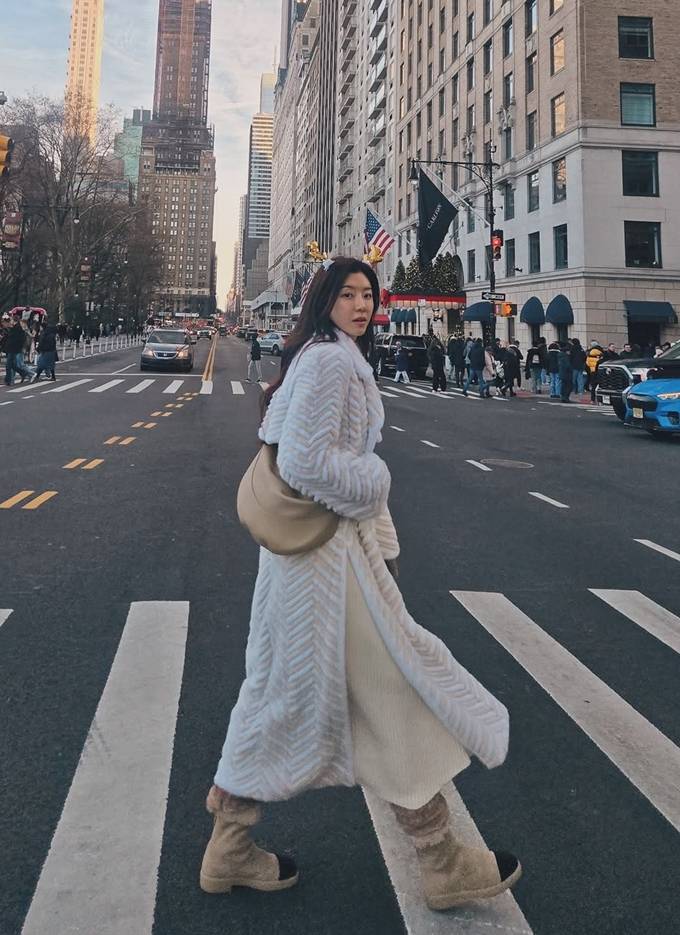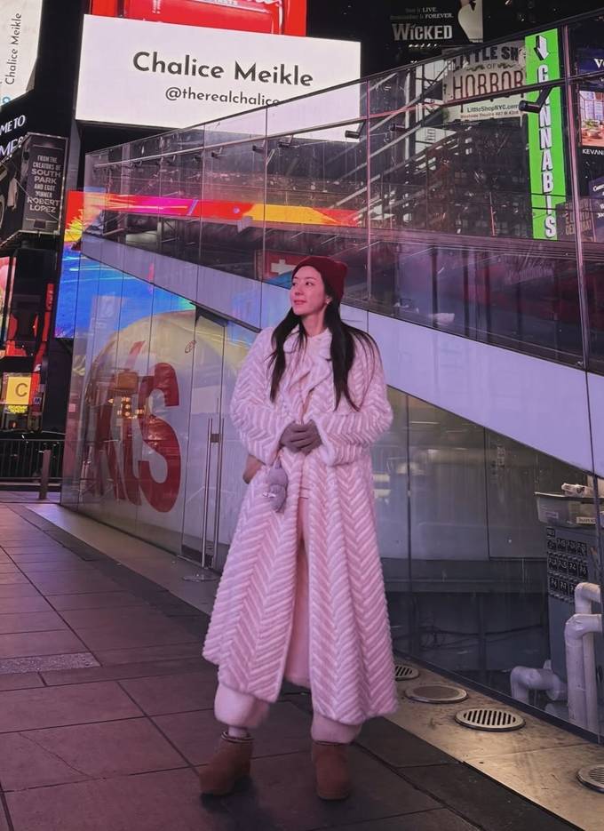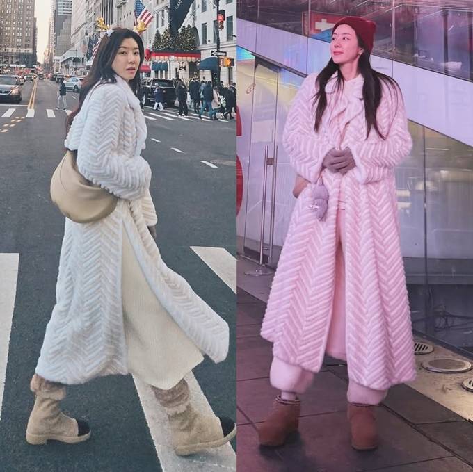 박한별, 뉴욕 크리스마스의 잇걸! 뉴욕 거리 휘저은 로맨틱 헤링본 퍼 코트룩