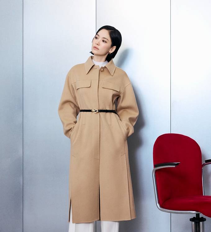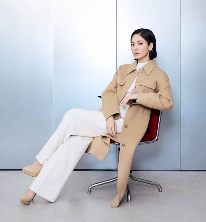 화보 속 송혜교는 베이지 컬러의 롱코트를 착용해 클래식한 우아함을 연출하는가 하면, 구조적인 더블 브레스티드 재킷과 유연한 실루엣의 블라우스, 와이드 팬츠를 매치해 세련된 시크 무드를 완성했다.
