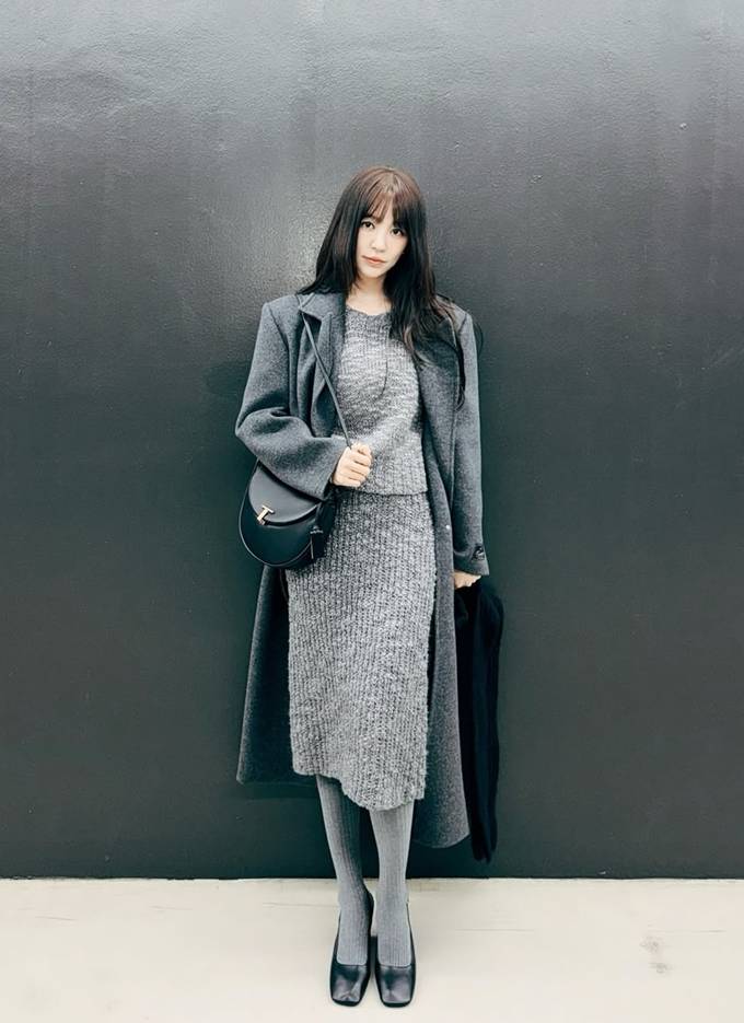 공개한 사진에서 윤은혜는 그레이 니트 스웨터와 롱 스커트 셋업에 그레이 스타킹을 매치하고 롱 코트를 걸친 톤온톤 스타일의 얼죽코룩으로 시크하면서도 세련된 도시녀의 모습을 선보였다.