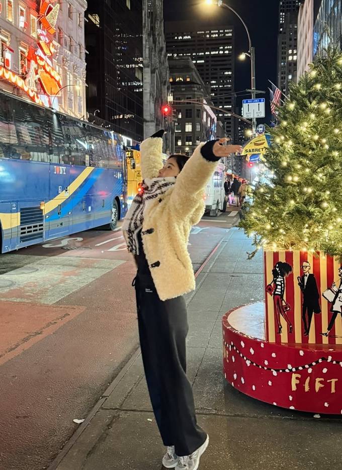 배우 기은세가 뉴욕에서 테디베어 재킷과 클래식한 코트룩으로 홀리데이 시즌을 제대로 즐겼다.