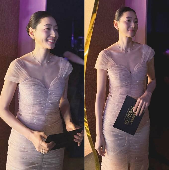 박진희, 판사 사모님의 누드 핑크빛 우아미! 시상식 빛낸 은은한 글리터 드레스룩