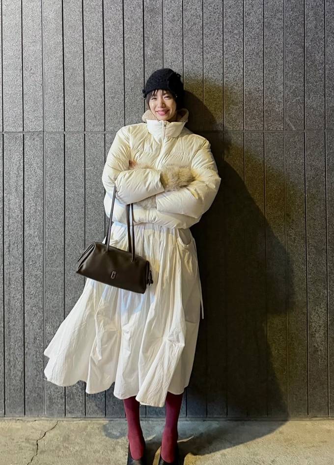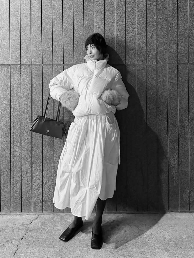 배우 나나가 화이트 숏패딩에 화이트 스커트를 매치한 톤온톤 숏패딩룩으로 패셔니스타 다운 면모를 드러냈다.