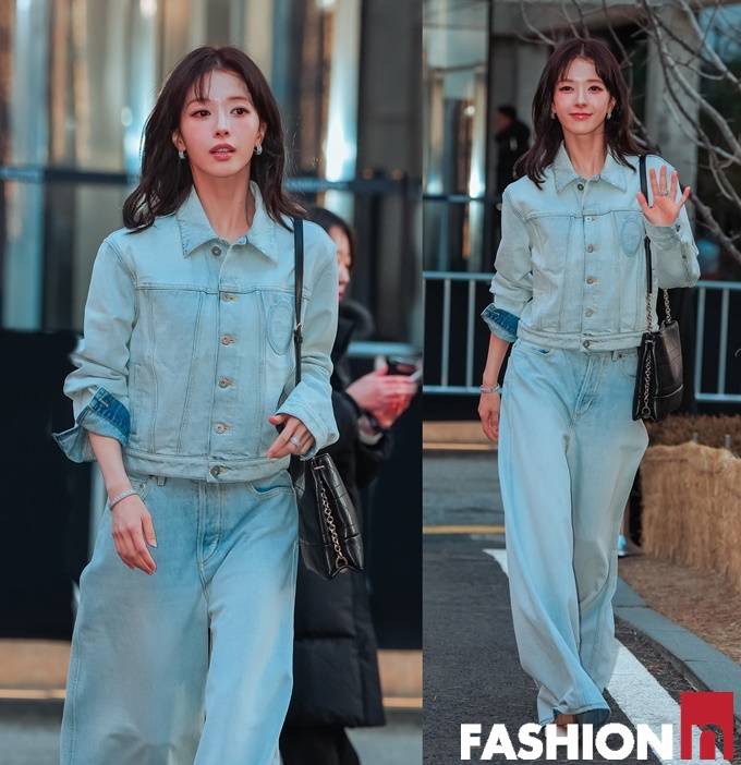 [패션엔 포토] 노정의, 벌써 봄을 입었네! 성수동 환하게 밝힌 미모의 청청 패션