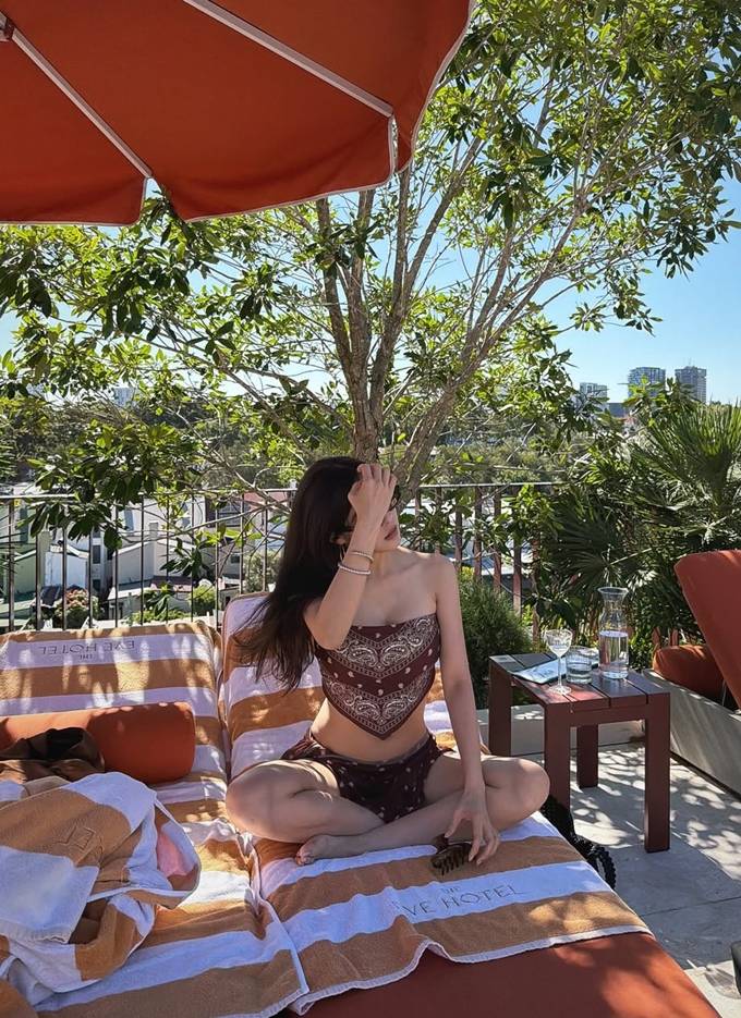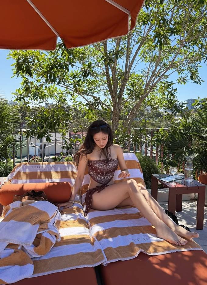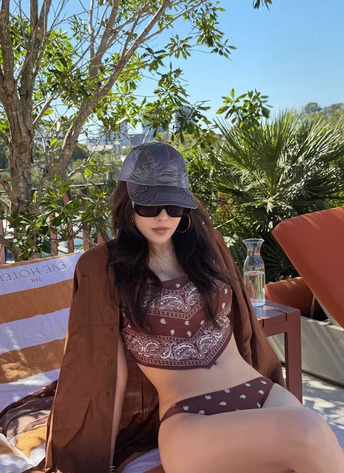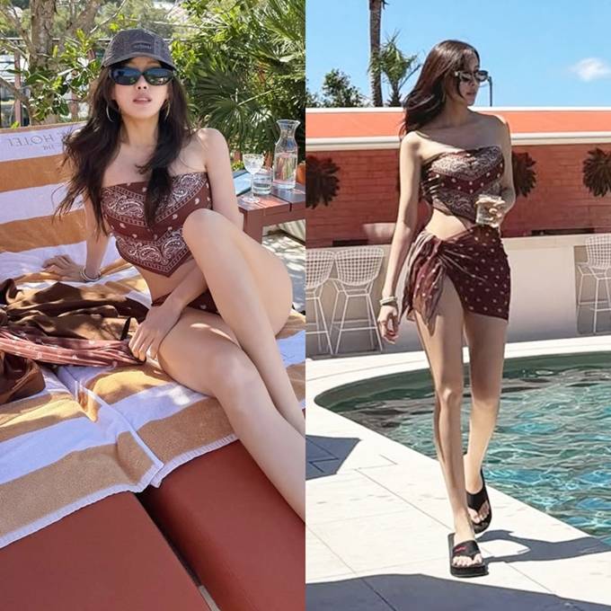 공개한 사진에서 효민은 브라운 컬러의 비키니 수영복 위에 스카프를 두른 리조트룩으로 탄탄하면서도 슬림한 몸매를 자랑했다.