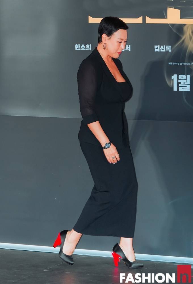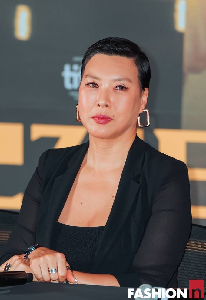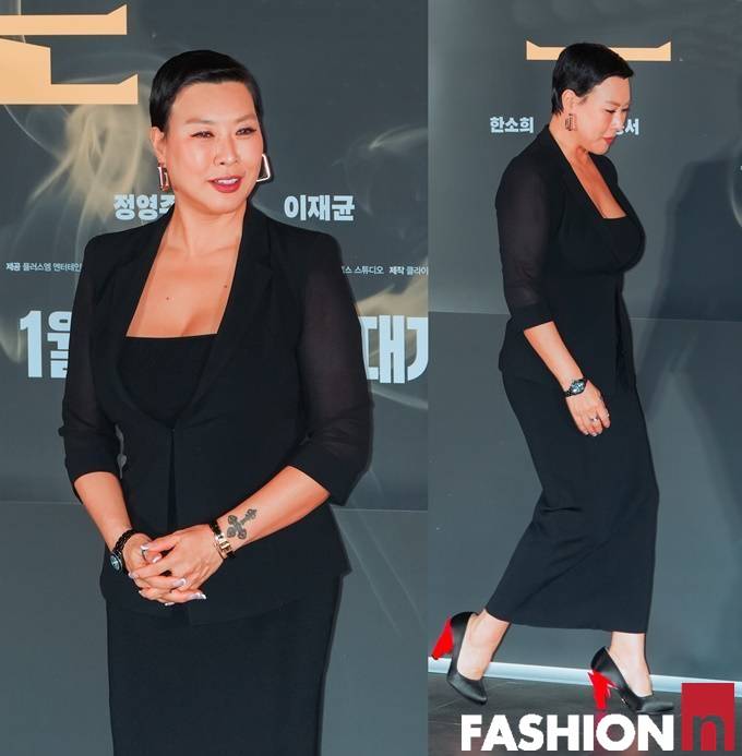 삭발 변신 정영주가 초밀착 블랙 투피스룩으로 카리스마를 발산했다.