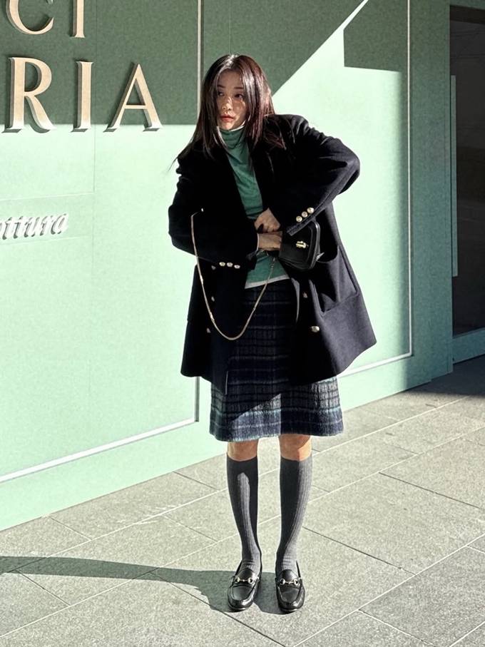 공개한 사진에서 박하선은 차분한 체크 스커트에 생기 넘치는 그린 터틀넥을 입고 지적인 블랙 코트를 매치한 프레피룩으로 단정하면서도 밝은 프렌치걸 같은 분위기를 자아냈다.