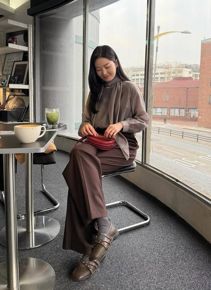 공개한 사진에서 류이서는 라이트 브라운 컬러에 시스루빛이 도는 타이 블라우스에 브라운 팬츠를 입고 브라운 컬러의 퍼 재킷을 매치한 톤온톤 스타일의 돌잔치 하객룩으로 로맨틱하면서도 시크한 분위기를 자아냈다.