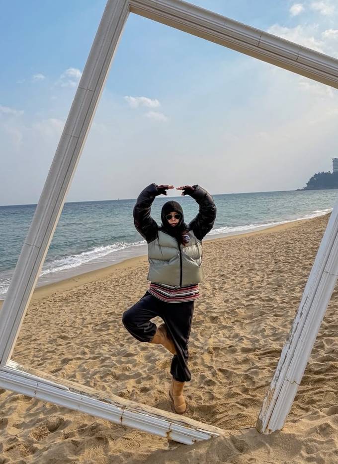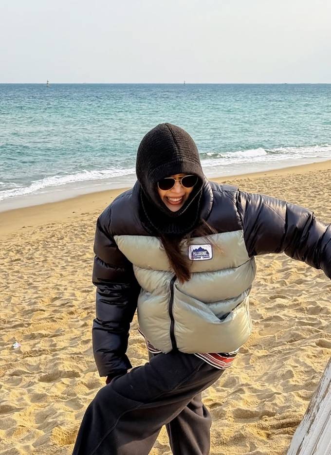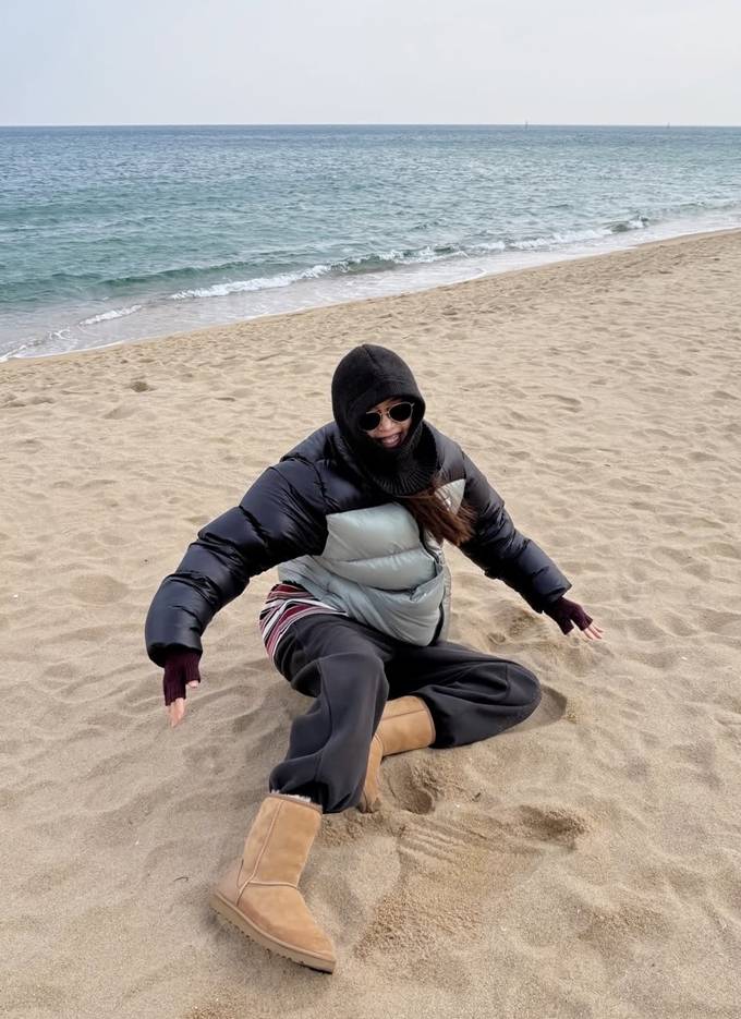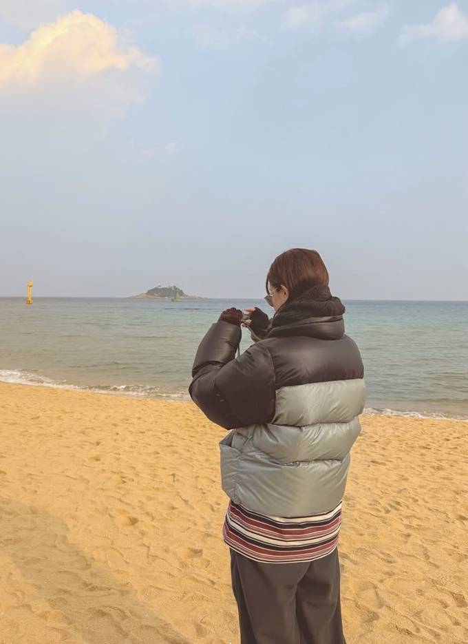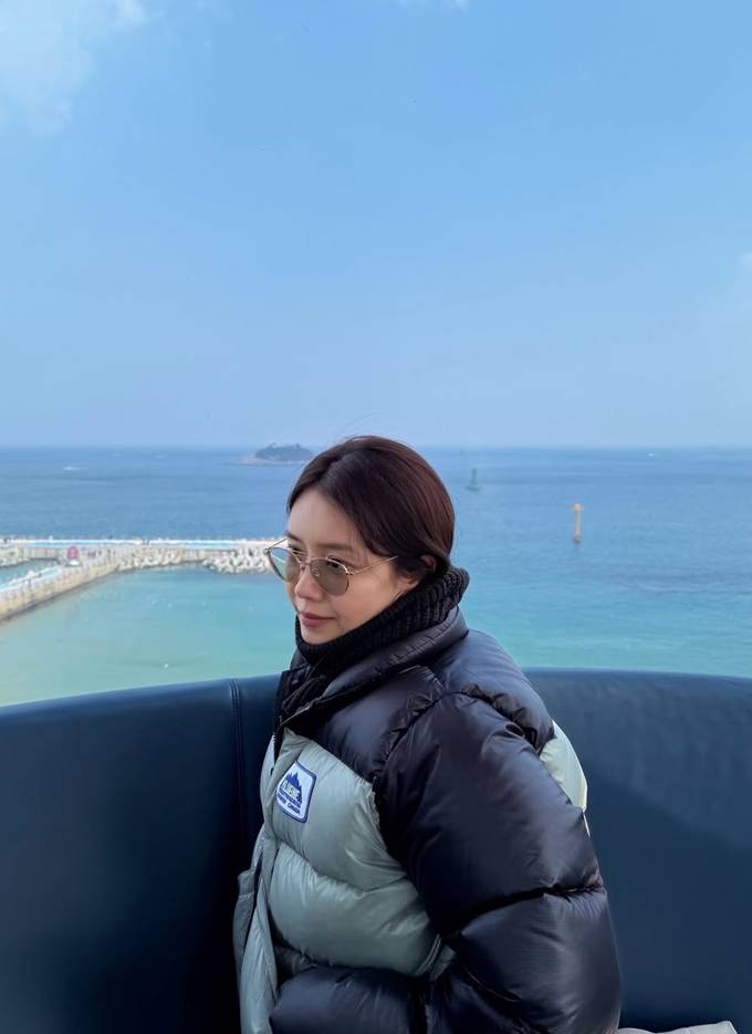 배우 채정안이 바라클라바로 꽁꽁 두르고 두꺼운 숏패딩으로 완전무장한 여행룩으로 바닷가 낭만을 즐겼다.
