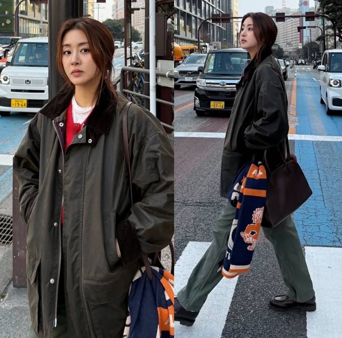 배우 강소라가 일본에서 동네 마실 나온 듯 편안하게 툭 걸친 오버핏 집업 코트룩으로 꾸안꾸 미모를 발산했다.