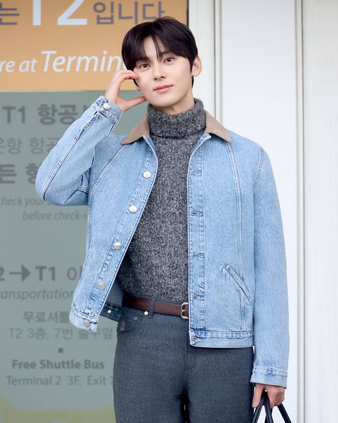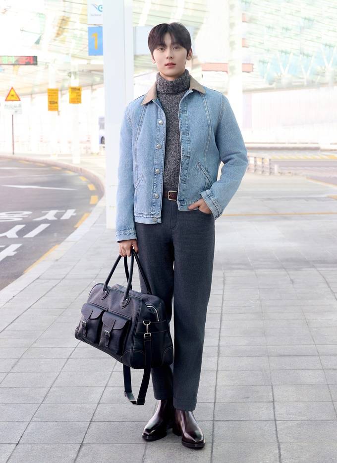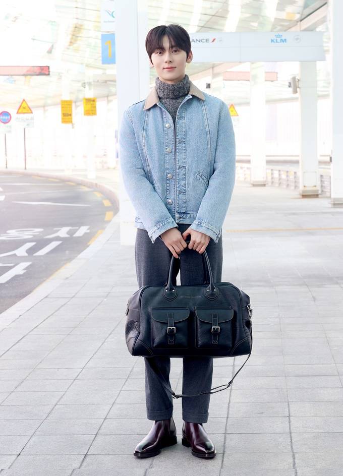 황민현, 데님 재킷과 니트 조합! 설렘 폭발 유러피언 캐주얼룩 피렌체 출국길