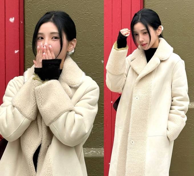 공개한 사진에서 강다은은 양털 안감이 드러난 아이보리 톤의 롱 코트에 블랙 이너를 매치한 외출룩으로 강남여신다운 멋스러운 얼죽코 스타일을 완성했다.