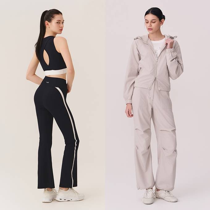 브라탑의 경우 러닝형의 어깨라인 디자인과 안정적인 기장의 크롭 스타일로, 실내 운동 시 단독으로 착용하거나 가벼운 아우터와 레이어드 하기에도 좋다.